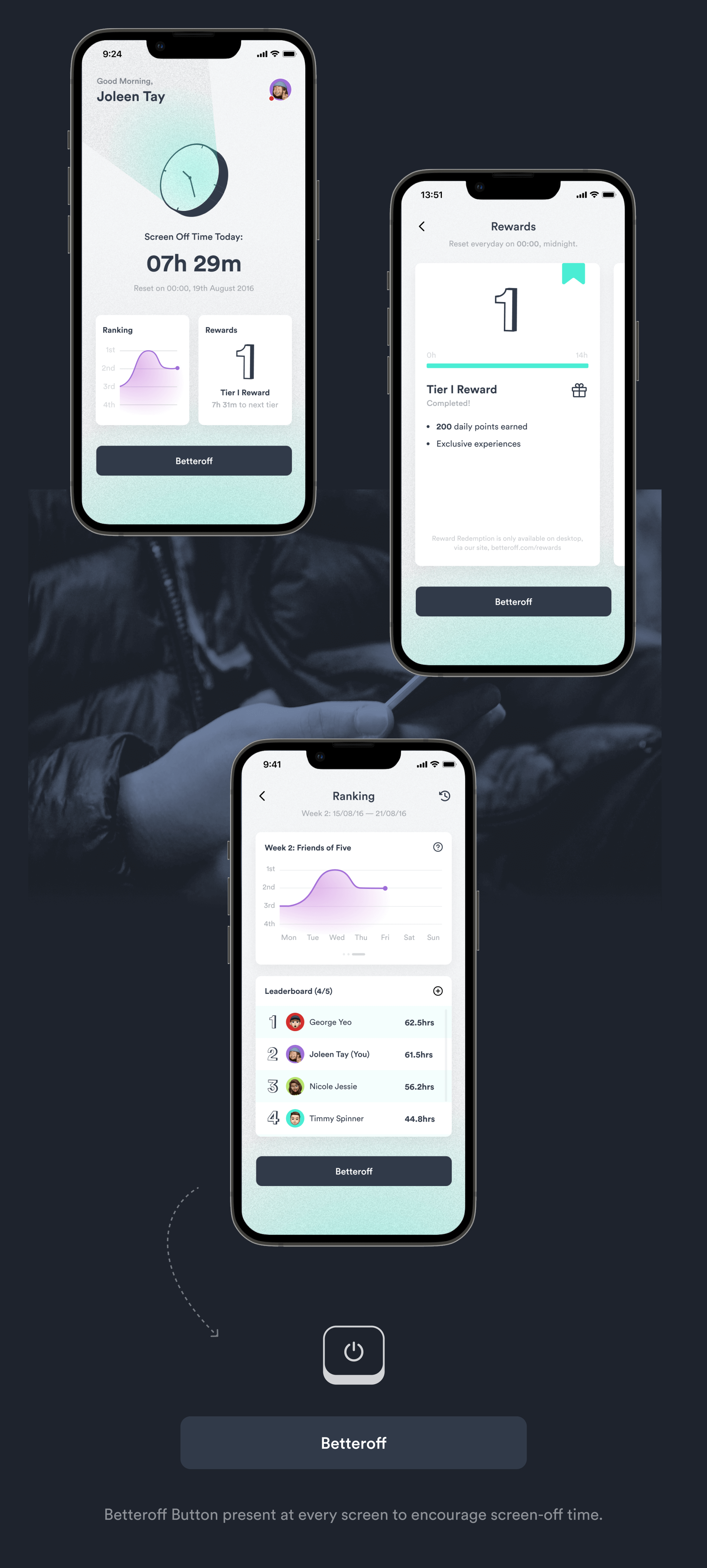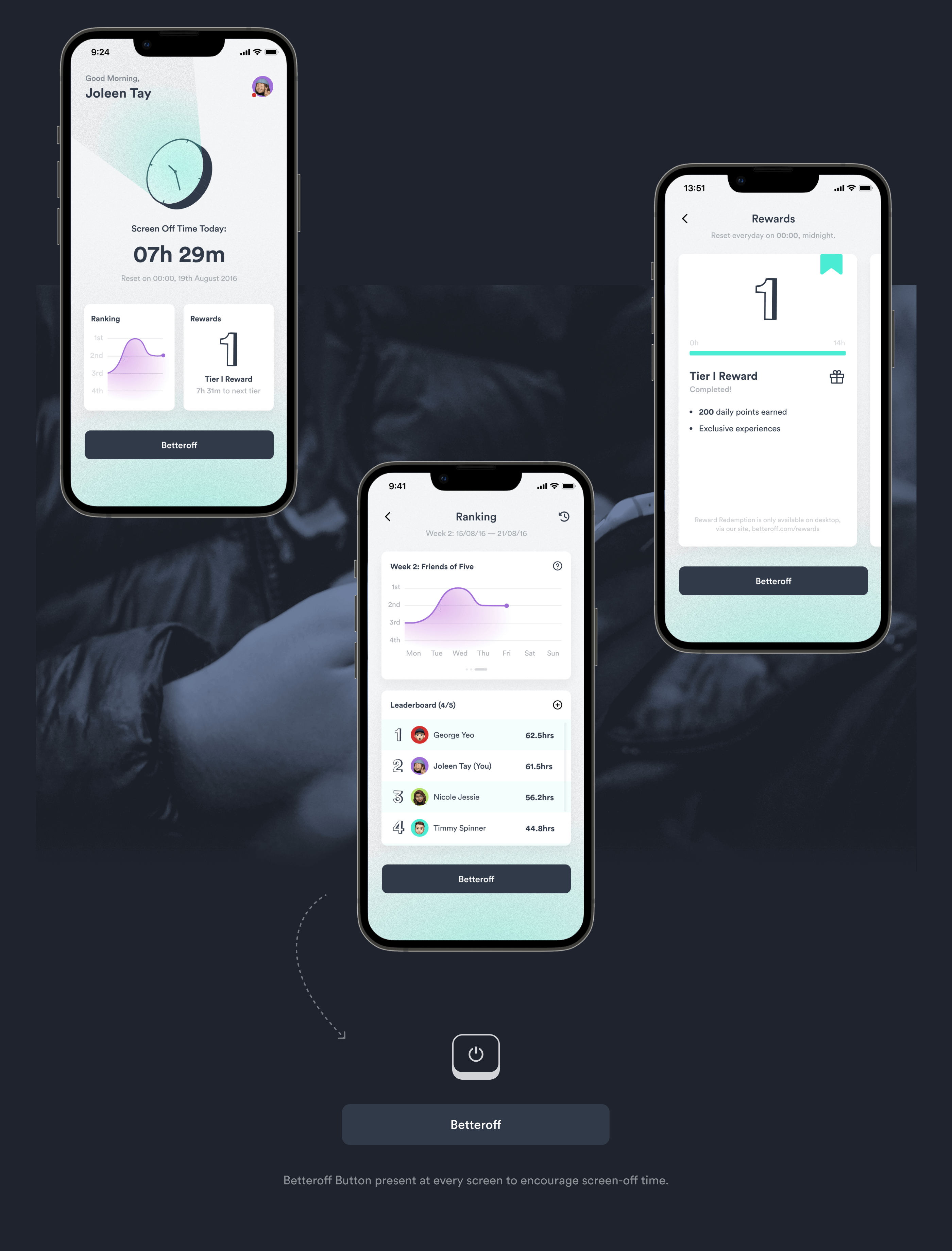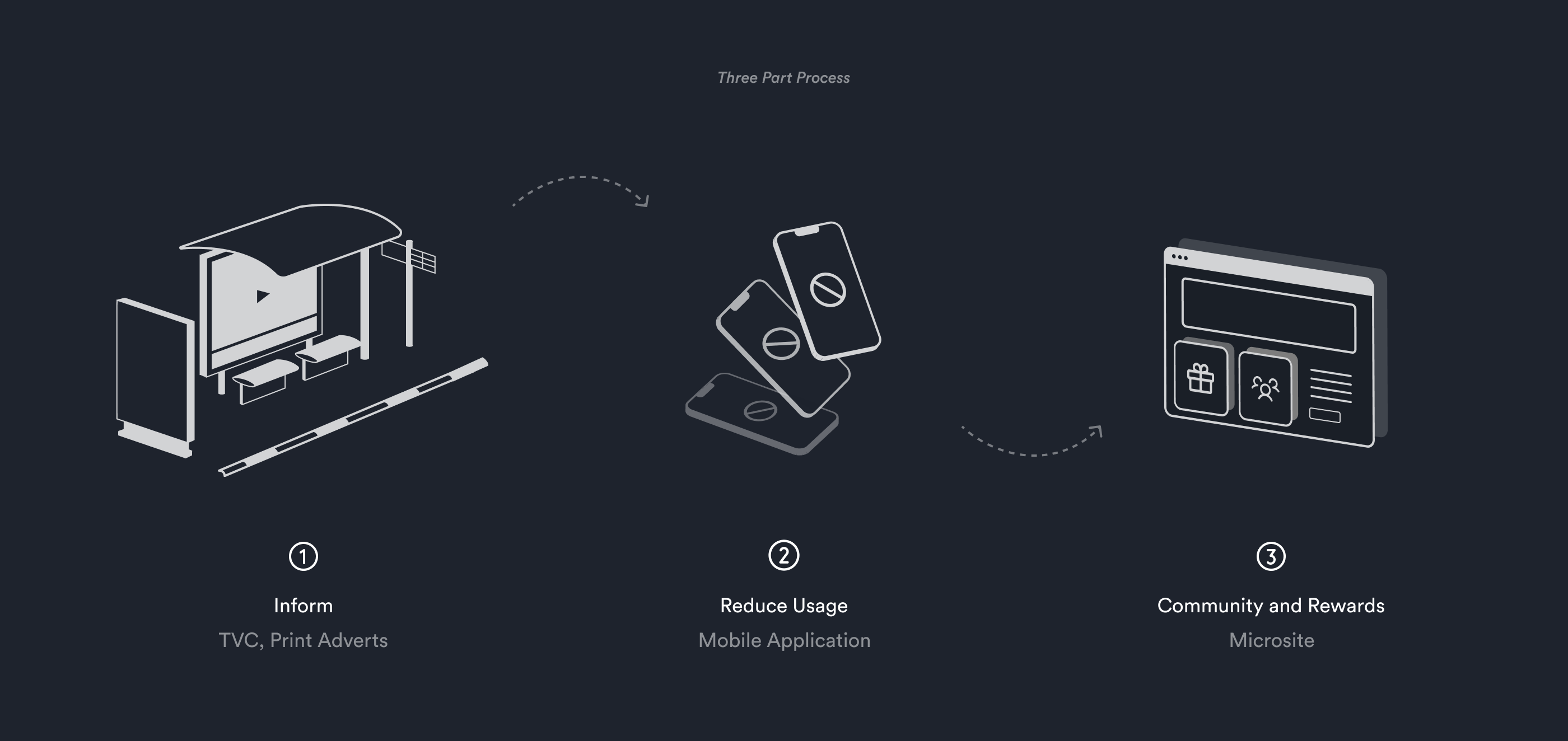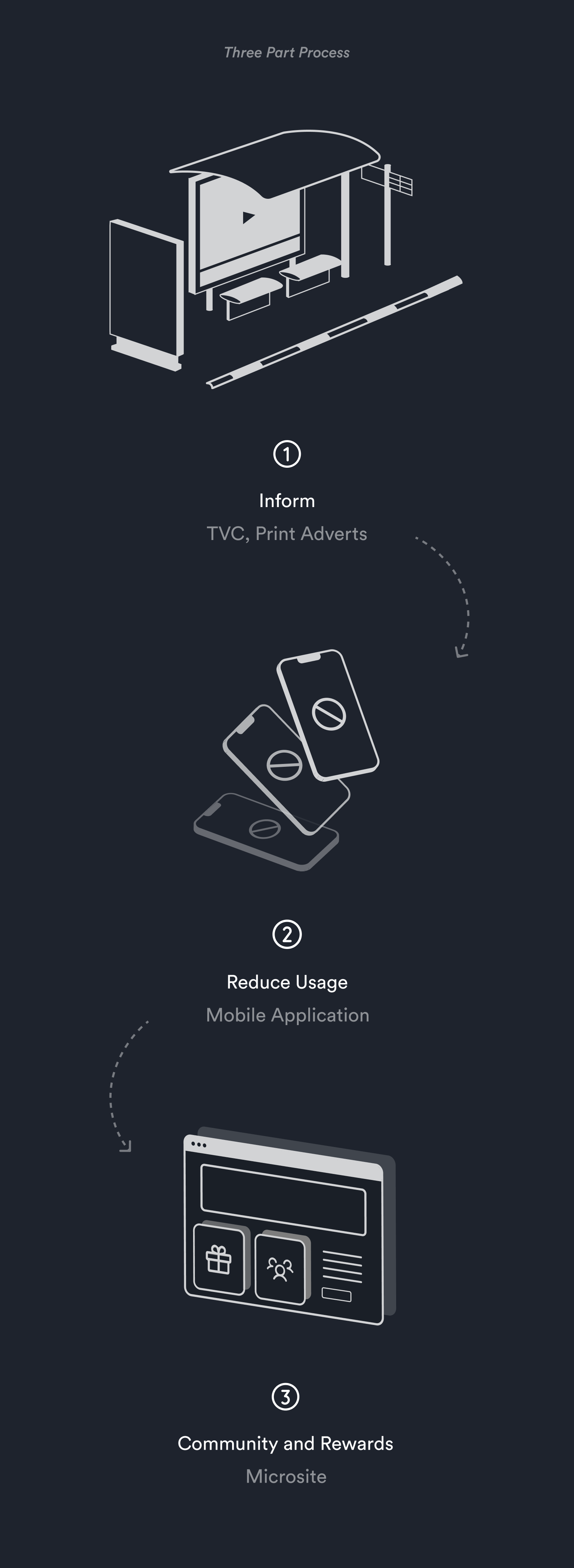 Smartphone addiction among youths has led to the neglect of health, hygiene, commitments and relationships in their life. We observed that when youths are glued to their screens, they're unable to notice how much they missed out on the happenings around them. More than 90% of people surveyed said they would curb smartphone addiction when given an incentive to make a change as a community. In addition, 76% also believe that a light-hearted and friendly approach to the campaign will be very effective.