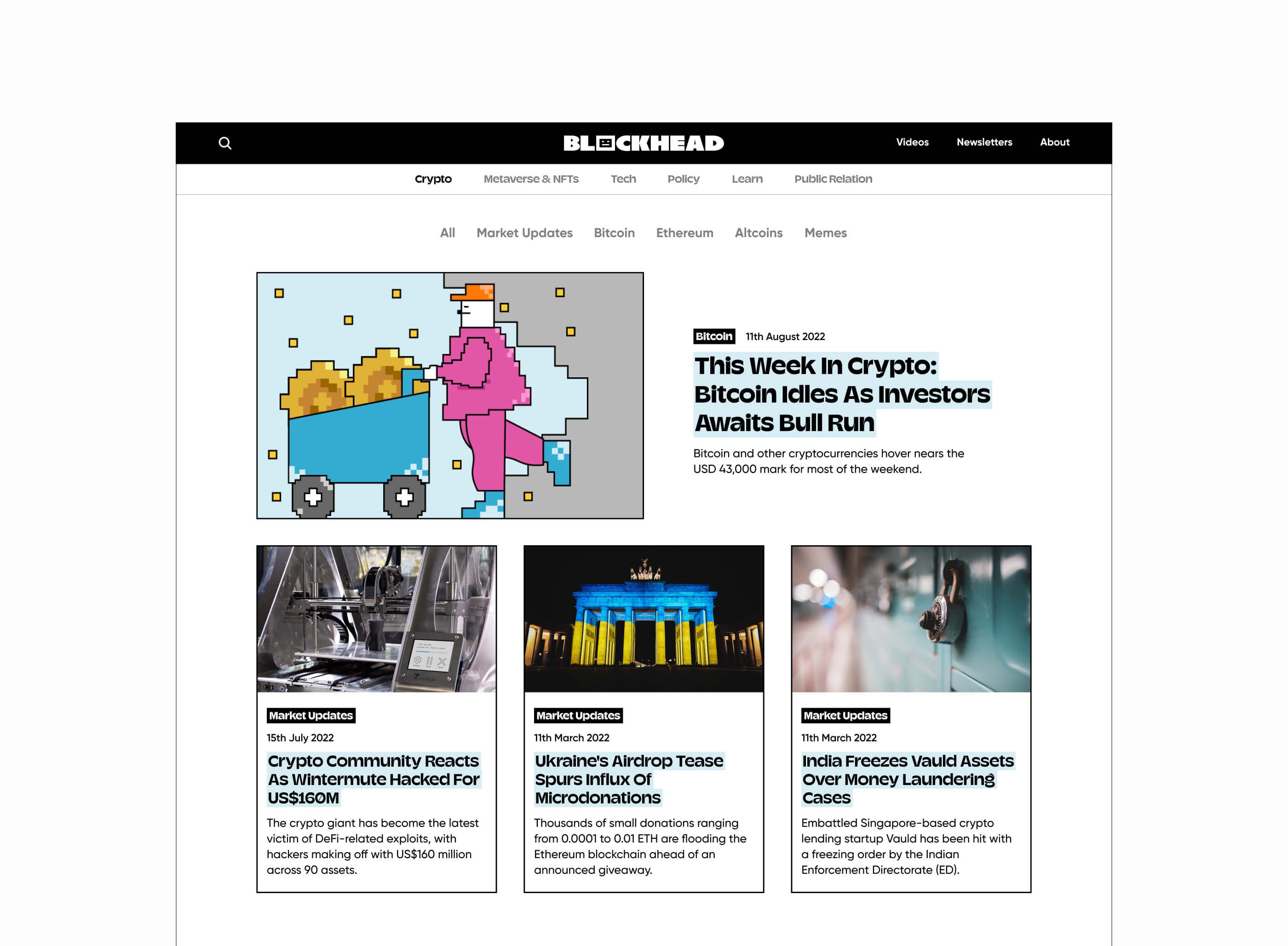 Blockhead is a financial news platform that covers the Asian financial and cryptocurrency markets for the person on the street. Rebranding from Bread News, Blockhead wanted to swiftly relaunch their site within a month, including the web development portion.