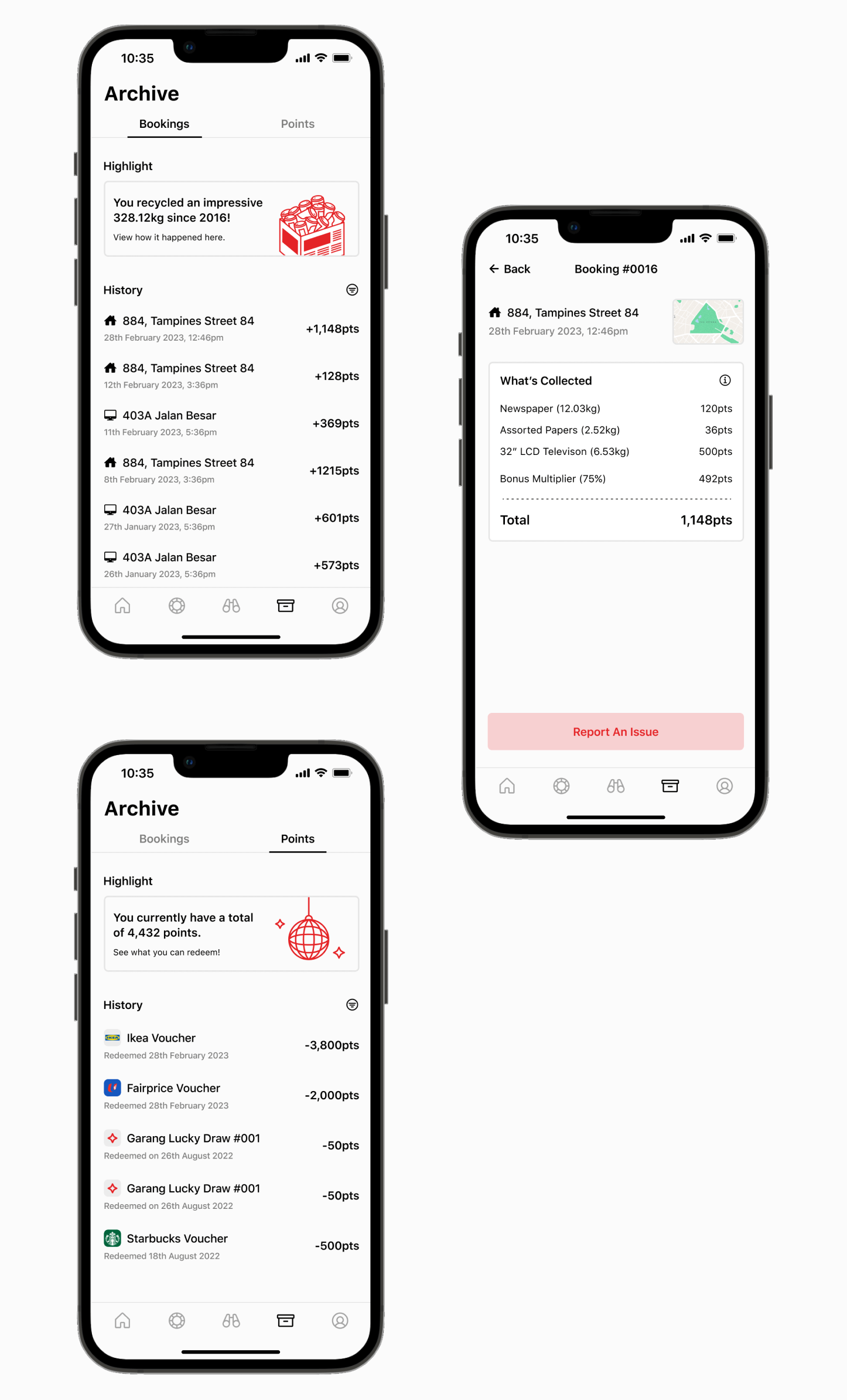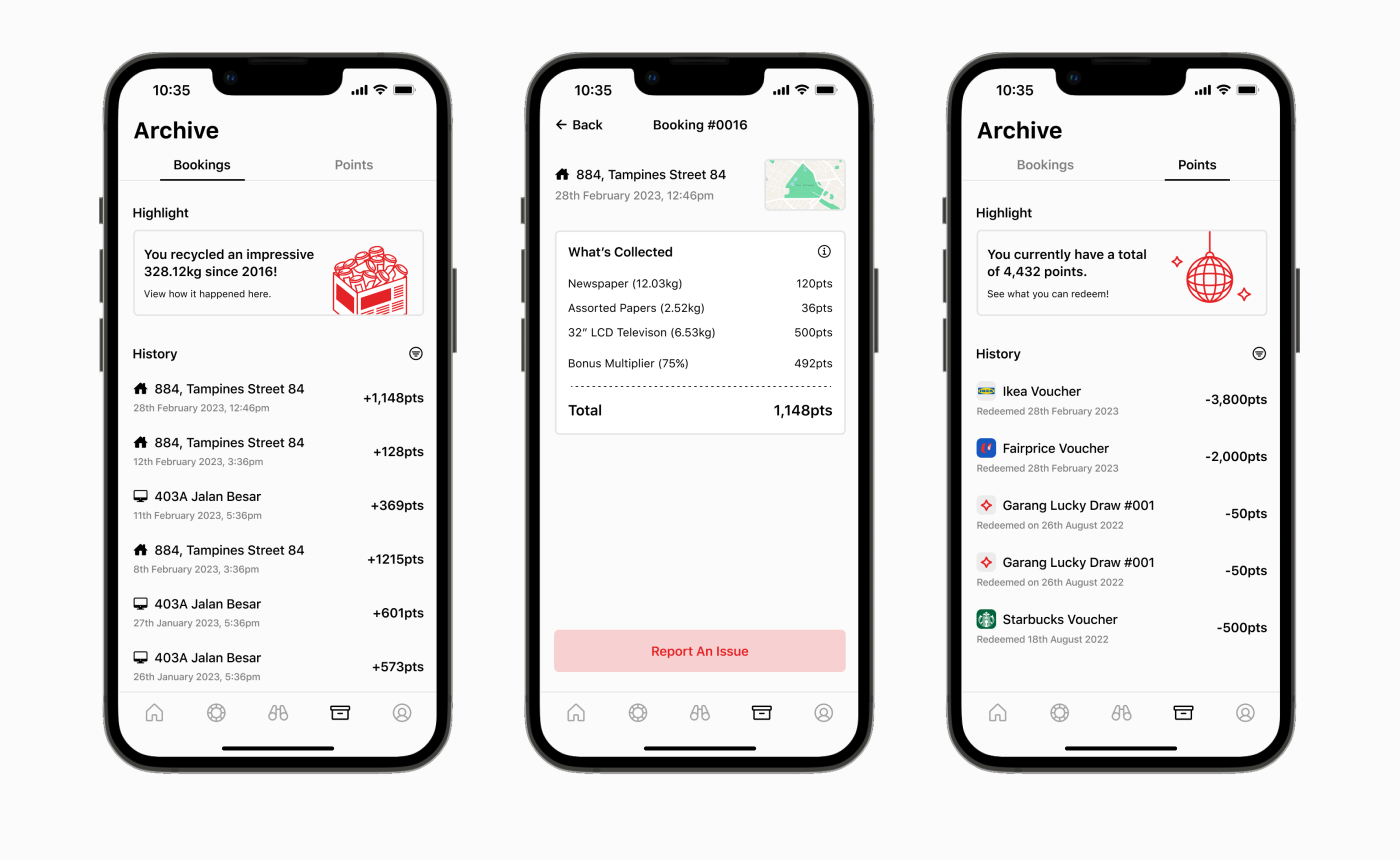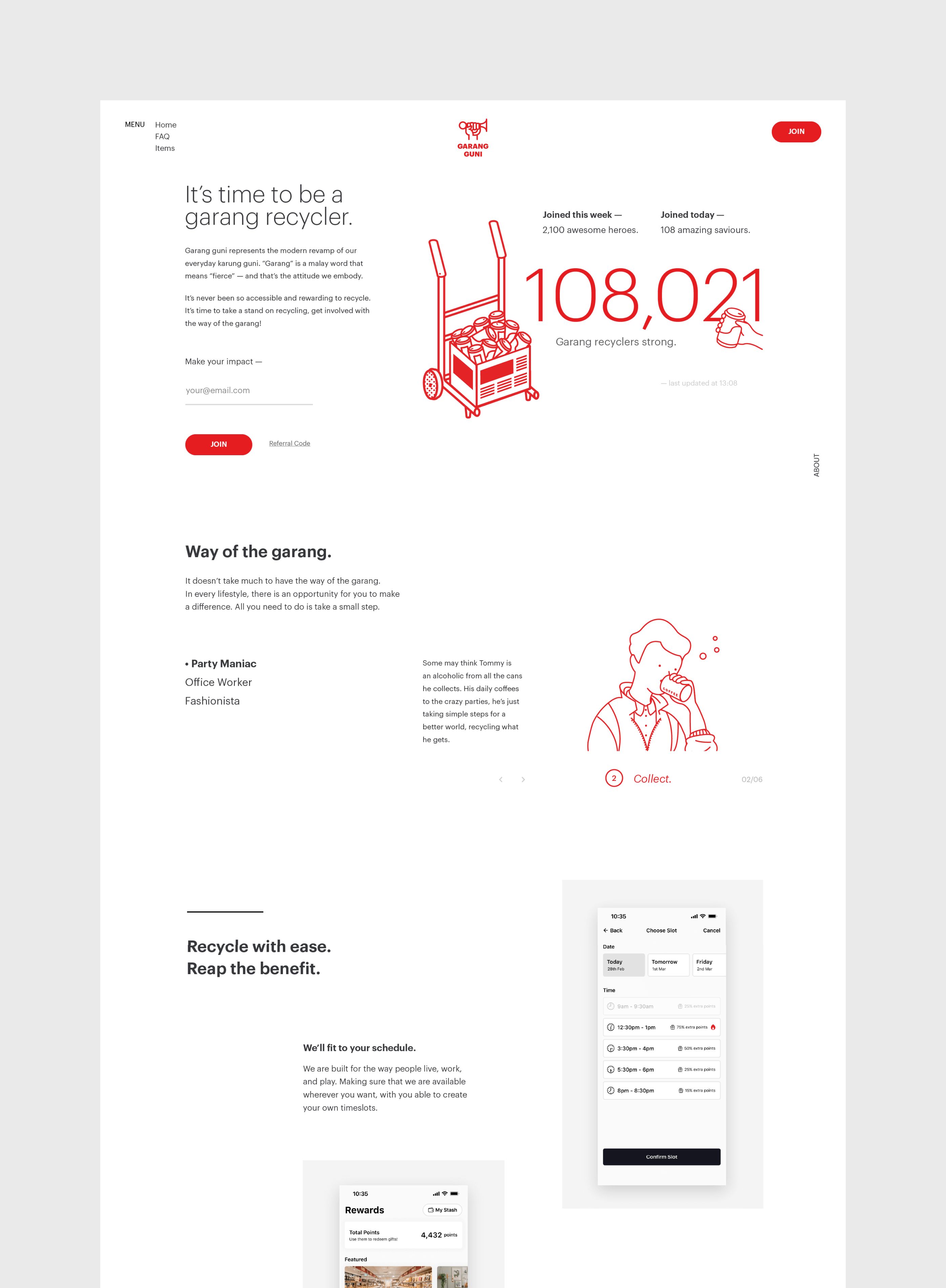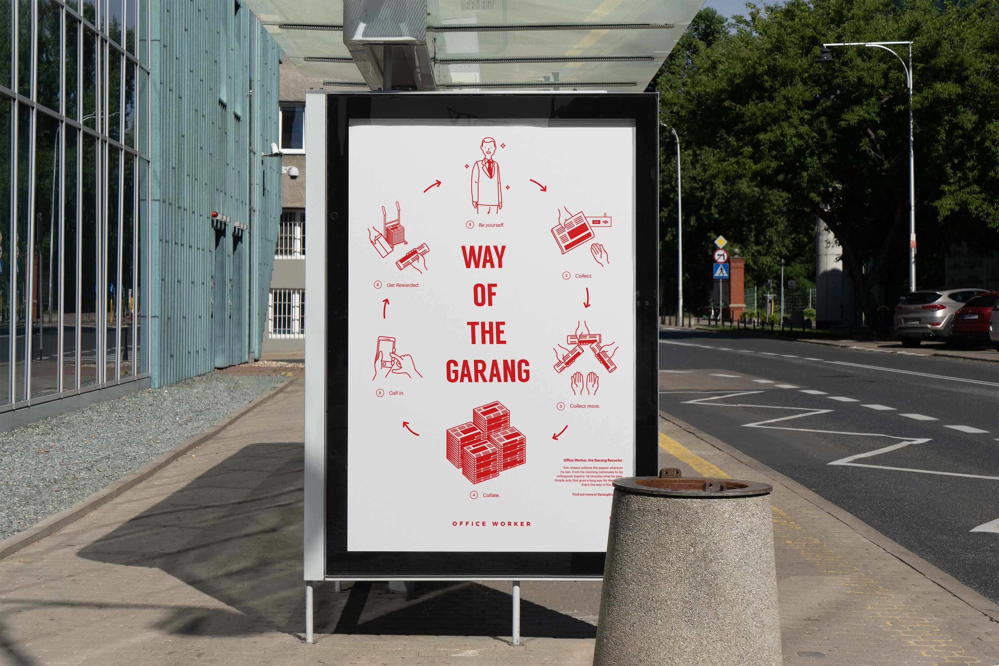 The idea focuses on improving the Karung Guni trade; an existing avenue of recycling instead of creating a new one. By revamping the avenue as an on-demand service that involves and modernizes an old trade, while rewarding acts of recycling, it encourages greater action through familiarity and convenience.
