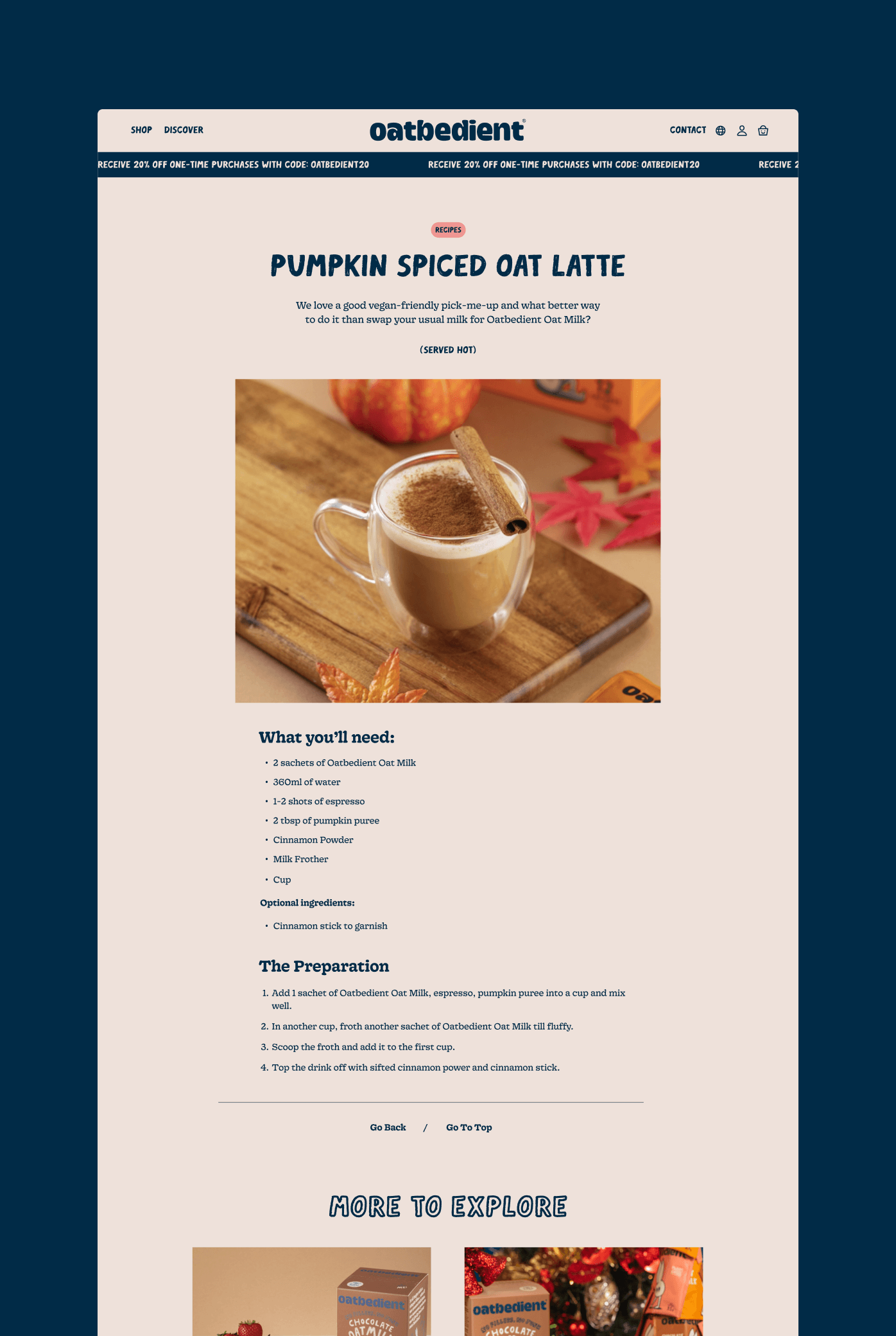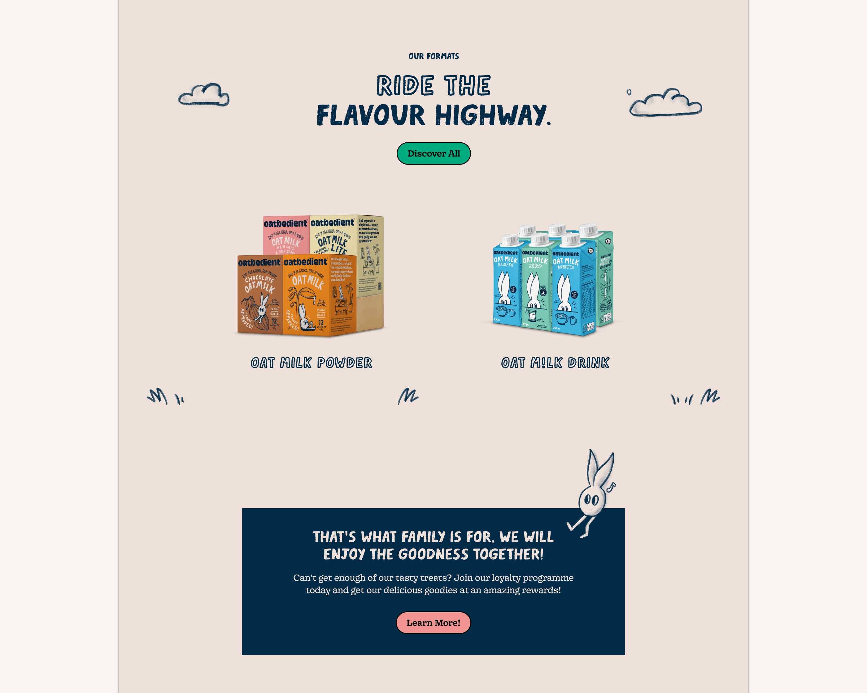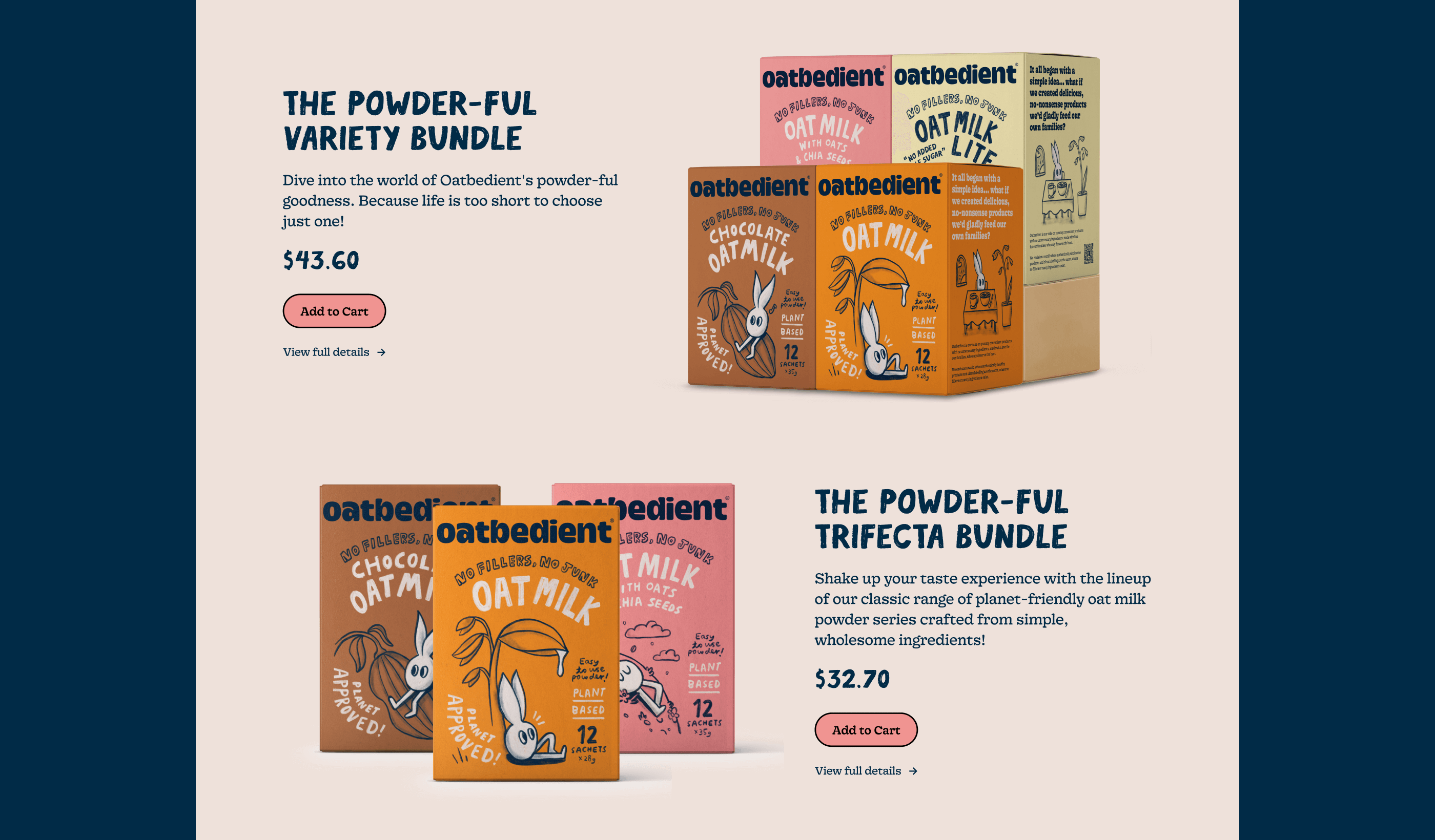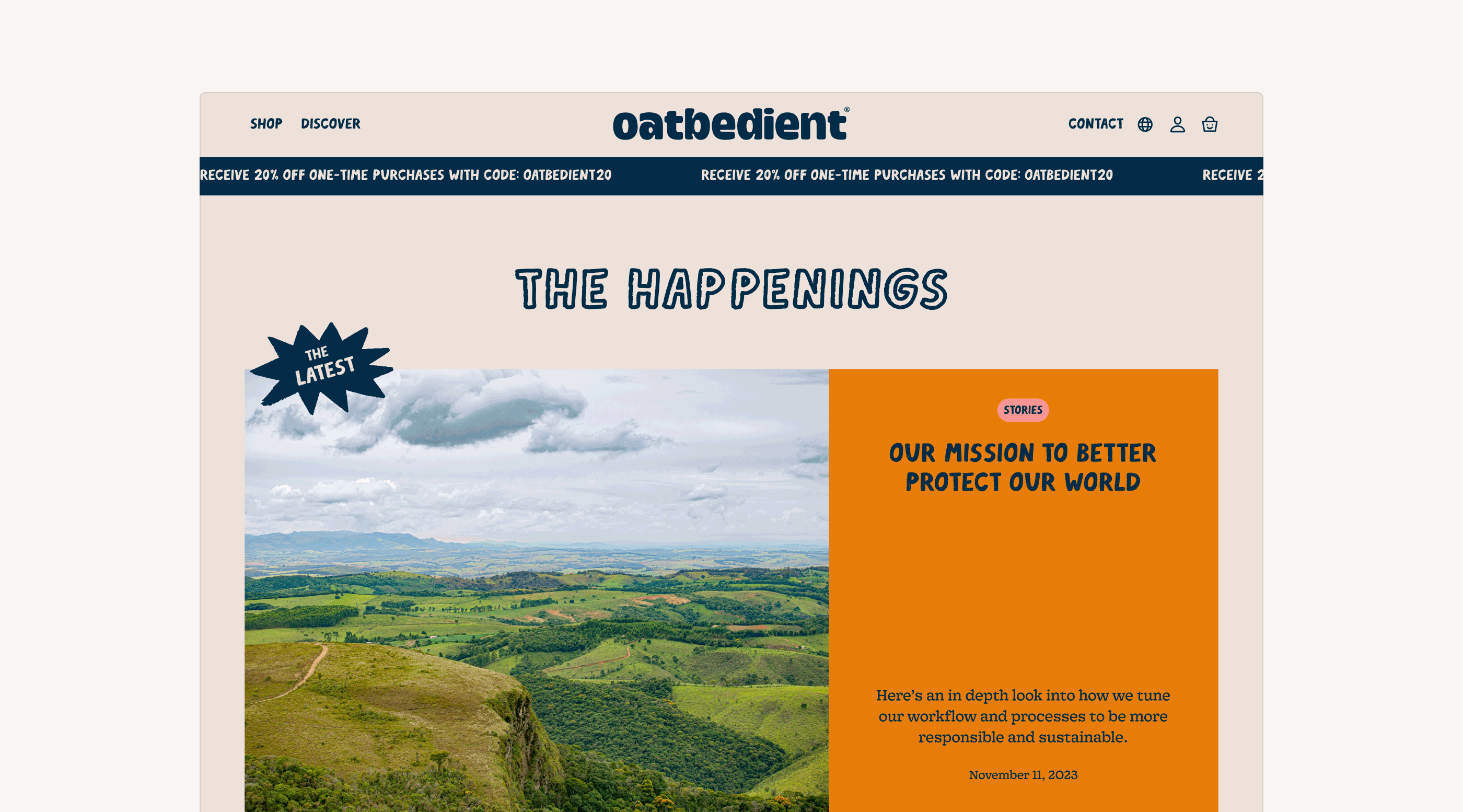 We helped translate their vision and personality into a site that showcases their sincere goal of making the world tastier and healthier. With the site, we built a home for Oatbedient's mascot, Oatdit, and made their digital presence even more personable and homely. We continuously collaborated with Oatbedient as their brand and product evolved, working together to better the world with deliciousness.
